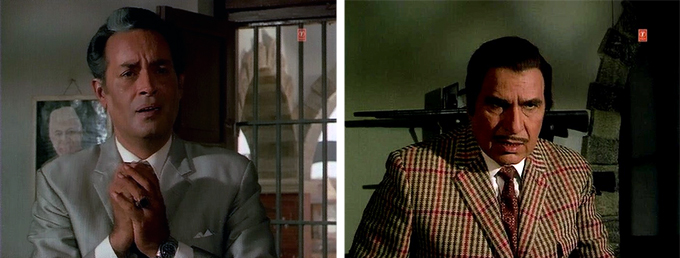 Raja takes Janiya to his Ma for safekeeping (the police are now looking for Janiya and Raja as well). This proves to be a bad idea, because Mangal has by now decided that kidnapping Sheetal for ransom is a good next step for him. He double-crosses Jagmohan (who thinks they are just getting rid of her so that his treason will remain undetected by Dhanraj) into arranging the kidnapping (courtesy of Shetty and Khursheed, a scary duo if ever there was one—poor Rekha! She does a lot of shrieking in these twenty minutes or so!). Poor Ma is killed when she tries to stop them, although she doesn’t die until she’s given a long speech to Raja while clutching a gigantic piece of silver jewelry in her bloodied hand which he eventually puts to good use.