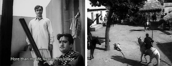 The film opens with a musical paean to India’s history and traditions as the credits roll. The bucolic rural idyll it represents is rudely interrupted by the arrival of dacoits, led by one Thakur Jarnail Singh (Sunil Dutt). His stop for a quick prayer at the local temple notwithstanding, he is not a likable man. He brutally murders a local man who refuses to procure bullets for him despite the pleas of the man’s wife Champa (Nirupa Roy), who becomes a young widow with a baby boy named Mohan.