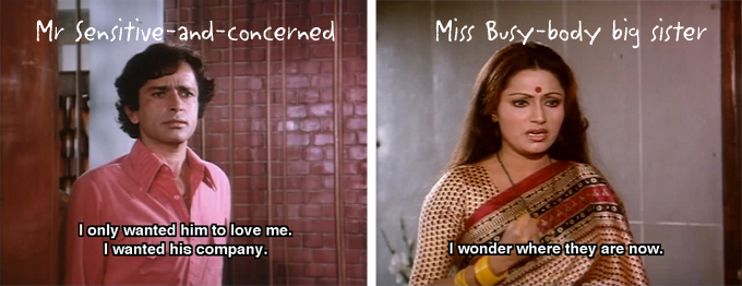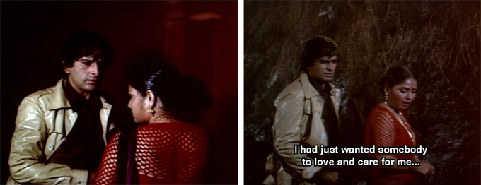 This is a rare sensitive moment in the film, where both Raakhee and Shashi actually showed up for work, and it’s very poignant.