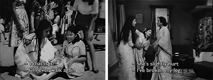 On her way home, Karuna passes through a children’s playground and comes across an adolescent girl who has hurt her knee. I miss that fun but dangerous playground equipment like merry-go-rounds; really kids today (at least in America) don’t know what they are missing. Karuna helps her get home and discovers that she is Munni (Kumari Naaz), Sushil’s younger sister, and a drama queen of the first order.