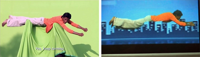 But Malegaon Ka Superman’s obstacles pale in comparison to those of his creators. At the top of the list is that Director Nasir and his assistants have to figure out how to make Superman FLY. He tells us that he learned about chroma keying from watching “Making of” segments on dvds of his favorite American films.