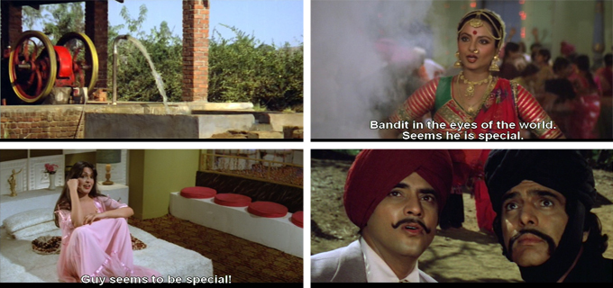 A daku-drama in the iconic mold of Manmohan Desai—what could possibly go wrong? Not much, I am pleased to report, at least as far as the film itself goes. The people in it suffer plenty, though, especially Feroz Khan’s angsty dacoit tortured by amnesia and an inexplicable phobia of water-pumps. Writer/director Chand hits every masala note he can think of even if not much is done with some of them (religious imagery, for instance, seems thrown in there for no good reason). A young family broken up, lockets and tattoos, socially respectable but morally bankrupt villains, blood transfusions replete with filmi irony (get it? irony? sorry), plus all the standard dacoit movie delights (beautiful horses, black pagris, tilaks, golden earrings), and a great cast make this one a complete paisa vasool winner.