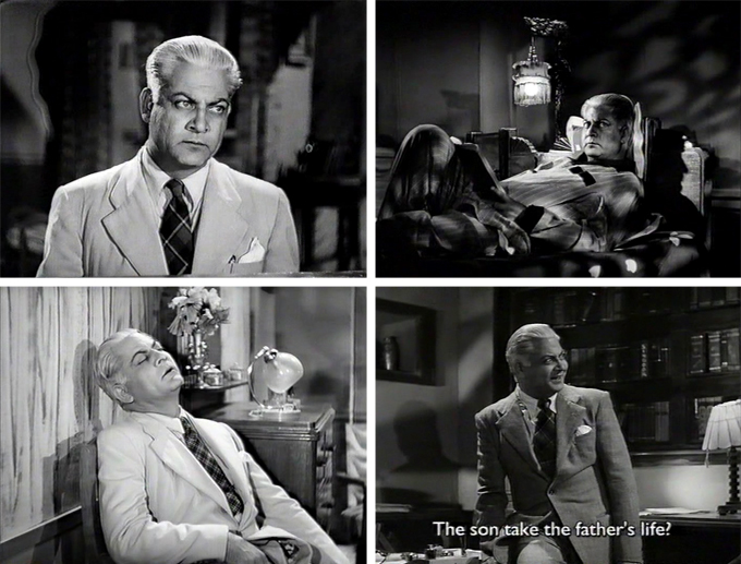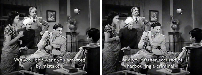 Having finished their tea, the other guests now trickle upstairs. Sheila’s brother Gopal (Prabhu Dayal) is the first to arrive, and he instantly understands what’s happened although Sheila claims that Ram has a “hunting injury”. He chastises Ram for using violent methods to gain independence, saying that a polite smile cannot be met with abuse (he doesn’t know one of my neighbors). Then Vinod comes in with his father and Hemat Rai, sees the bullet in Sheila’s medical tray, and surreptitiously pockets it. He warns Ram not to leave the house while letting him know at the same time that he knows what Ram has been up to.