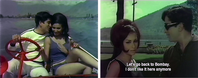 Instead Sapna marries Gopal at the registrar’s office with Subodh and Eeta as witnesses, and they head off for a happy honeymoon in Kashmir where Sapna water-skis on Dal Lake (she spent a lot of time in swimsuits that year) as Gopal serenades her. Prem and Pran are pretty unhappy when they discover what has happened!