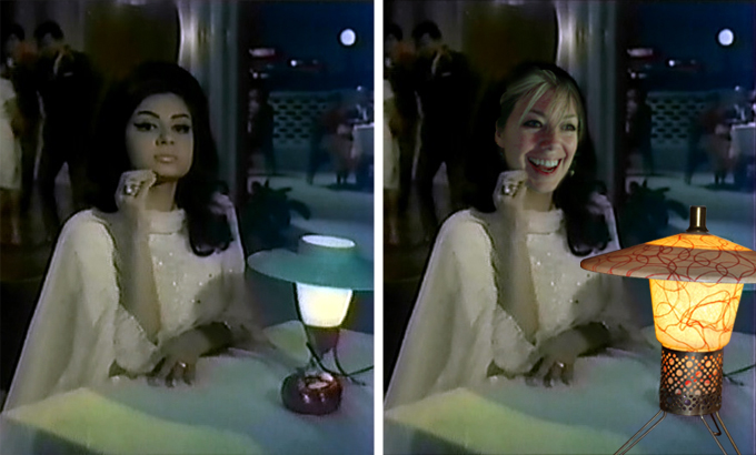 I know that one or two (Mike Barnum I am looking at you) of you will be as thrilled as I am to recognize yet another filmi prop that I also happen to have lying around in my house! Of course I’m way more excited about my lamp than is Sharmila, probably because mine is much more beautiful.