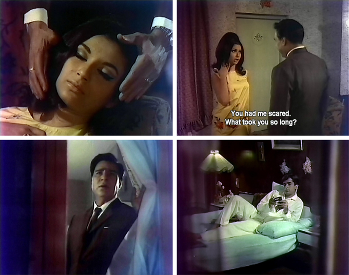 The neighbor is pretty Sapna Mathur (Sharmila Tagore), a girl of some means with a beau by the name of Prem Malhotra (Prem Chopra) and they head for a nightclub (yay!) where the music is as much of a treat as you could ever want. It is reason enough to put up with the painfully obvious red herrings!