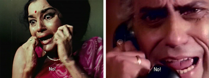 I don’t think “Nahiiiiin!!!” requires much by way of explanation, except to say that abject despair and/or terror have produced some really classic moments. Even in films which lack any other redeeming characteristic, a good hearty “NOOOOOOOO!” accompanied by the requisite facial contortions and wringing of hands will always perk me right up. I would bet that anyone who watches Hindi movies on a regular basis has his or her own favorite Nahiiin!!! Scenes firmly fixed in memory.