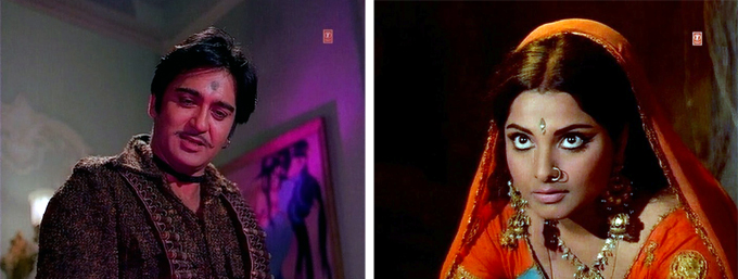 I have no idea what the plot of this movie is—seriously no idea—but I know that I love it. Even if with subtitles it became a maudlin, sexist melodrama (which I doubt) I would still love it. Why? Well for one thing it is extremely shiny. Premnath has a lair made completely out of mirrors, and not in a pretty Mughal-e-Azam kind of way but in a spectacularly gaudy disco kind of way. The songs by OP Nayyar are delightful and the cinematography (VN Reddy) is gorgeous. The cast is a veritable Who’s Who of character actors. And a still-dashing Sunil Dutt makes a dacoit I can really root for, although he does seem a little old for plump young Rekha. The story is liberally sprinkled with dacoit-drama masala ingredients: greedy moneylenders, long-lost daughters, flashbacks, dozens of people named Singh, pretty pretty Marwari horses, and real ruffians lurking beneath a veneer of respectability and draped with scantily-clad gori extras. I felt totally sated by the end.