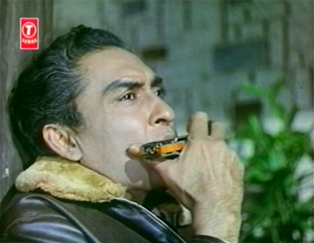 This is not a very good film. In fact, many might flat-out call it a bad one. But I was entertained thoroughly by the sheer power of Ashok Kumar’s awesome performance, an Abundance Of Helen, and the gaudy spectacle of Pradeep Kumar’s makeup (he wears more of it even than the ladies). Plus, a (way too) short appearance by my favorite band, Ted Lyons & His Cubs in the seventh film that I know about, so far. And with Helen, too—a first! I’m always happy to see them and hear their bahut achcha cha cha tunes. And so I found it easy to put up with the predictable plot, the dreary Pradeep-Padmini pairing, the day/night continuity issues, horrible editing (apparently a five year old was given responsibility) and so on. It is, when all is said and done, Dadamoni’s movie, and he is great in it.